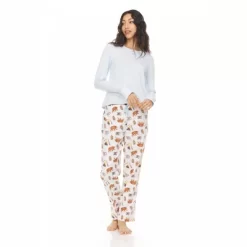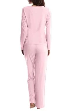 Bearpaw Women’s Placket Long Sleeve Top With Pants, 2-Piece Pajama Set For Women