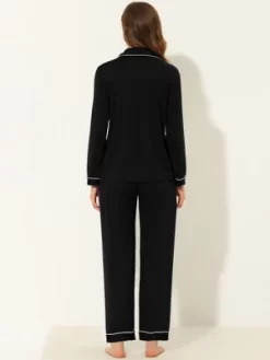 Cheibear Women’s Long Sleeves Pants Nightwear Button Down Lounge Pajamas Set