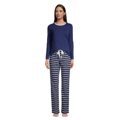 Lands’ End Women’s Knit Pajama Set Long Sleeve T-Shirt And Pants