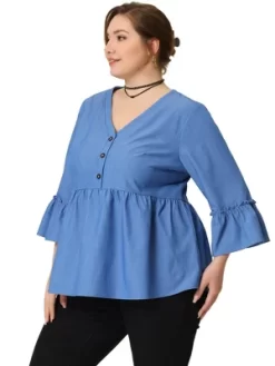 Agnes Orinda Women’s Plus Size Elegant V Neck Layered Ruffle Summer Outfits Blouses
