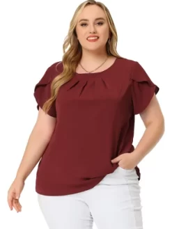 Agnes Orinda Women’s Plus Size Elegant Pleated Petal Short Sleeve Vacation Office Work Blouses