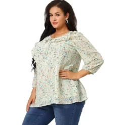 Agnes Orinda is a women’s plus-size brand inspired by the needs of the customers. Show off your perfect curves with just the right cut, and comfortable fabrics for a pleasurable experience. A romantic look is made everyday easy with this tie V-neck blouse in a flattering loose style of sheer crinkled chiffon with a dainty floral print. The shape of the top is classic and feminine, and the fit is relaxed and easy. Illustrated in a watercolor floral print and softly textured in floral chiffon, this blouse adds instant romance to whatever you pair it with.