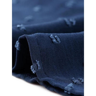 - This top features a classic round neck, solid color, short sleeves, crocheted lace, lightweight chiffon, and swiss dots design, which is simple and elegant