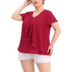 Made of comfortable quality chiffon fabric, this top is perfect for any occasion. The flutter sleeves give a feminine touch and add a trendy element to the top. Featuring a flattering v-neckline, this top is designed to enhance your neckline and give a slimming effect. The layering detail adds depth and dimension to the top, creating a unique and fashionable look. The solid color allows it to be easily paired with other wardrobe pieces, making it a versatile addition to your closet. Whether you’re attending a business casual event or going out for a night on the town, this top is the perfect choice. It can be paired with black trousers or a skirt for a professional look, or with jeans for a more casual and trendy outfit. The backless design adds a touch of sultriness, making you feel confident and stylish.