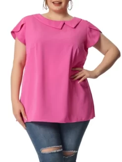 - Peter Pan Collar, Overlapping Wide Sleeves, Beauty Chiffon T shirts