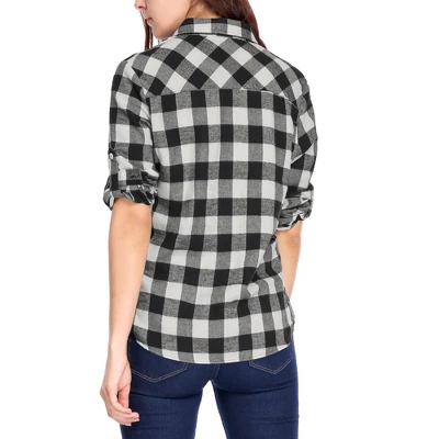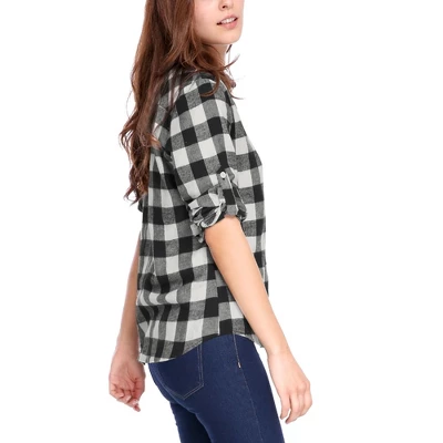 Get in touch with nature in the shirt. This button shirt features a plaid print as well as roll-up sleeves. Featuring a point collar, button closure front, and roll-up sleeve. Pair with denim for a weekend chic style. Occasion: Coffee Shop, Shopping, Office, Work, Dating, Social Activities, Weekend Gathering, Casual, etc. The model is wearing a Small.