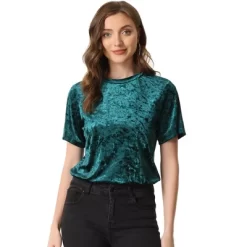 This T-shirt styled in short sleeves and the velvet fabric brings a casual and fashionable touch to whatever outfits you’re putting together. This round-neck T-shirt with the velvet fabric highlights your elegance. The classic retro solid top design instantly elevates this round-neck top and makes it a sophisticated choice for day or night. This velvet blouse adds a casual and vintage touch to your wardrobe.