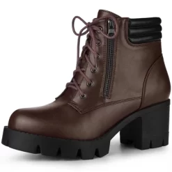 - Low Platform, Round Toe, Padded Insole, Lug Sole; Chunky Heels, Lace Up Decor, Side Zipper