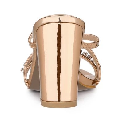 These rhinestone block-heel slide sandals are the perfect glamorous addition to your partywear this season. With an on-trend block heel, they can be paired with a dress, and a statement clutch to finish your look. They are more textured and anti-slip effectively. Their moderate heel height makes you feel more comfortable. The open design provides breezy comfort for your feet. The crisscross strap is a classic design that is never out of date and wearing them will make you look elegant.
