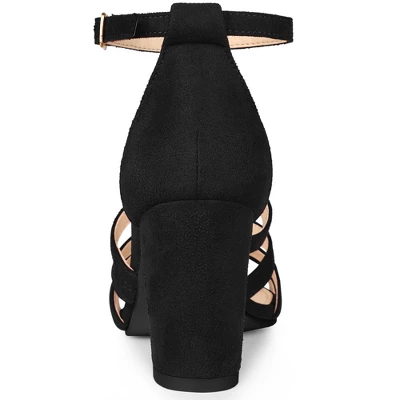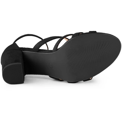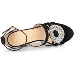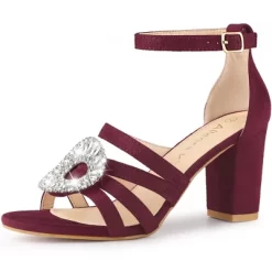 A sculpted chunky heel and crystal-adorned buckle embellishment make this open-toe strappy sandals the best pick of the season. The heels feature a crystal rhinestone buckle and the open-toe design, which add a atmosphere of elegance. It must be great to match this chunky heel sandals with jeans and a skirt.