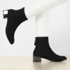 Featuring a solid block heel for an easy slip-on, these plaid paneled boots are stylish and on-trend, making them easy to match any outfit. Ankle Boots; Chunky Heels; Pointed Toe; Plaid Decor; Slip-On; Vamp: Faux Leather +Fabric; Outsole: Rubber; Heel: ABS; Heel Height: 3 5/9 inches; Shaft Height: 3 8/9 inches.