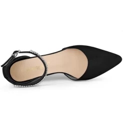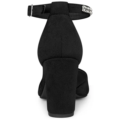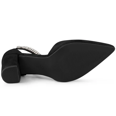- Pointed Toe, High Heel Pumps, Rhinestone Strap, Chunky Heels Pumps