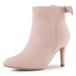 - Pointed Toe, Stiletto Heel, Side Zipper, Bow Decor, Back Cutout