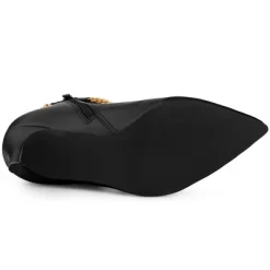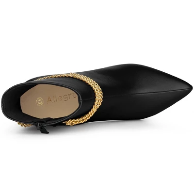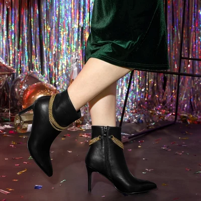 - Chains Ankle Booties, Side Zipper, Stiletto Heels