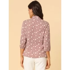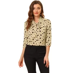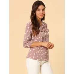 A dash of soft fabric enhances the light and airy feel of this billowy polka-dot blouse. Cute and nice, this blouse features polka dots, a bow-tie neck, ruffle shoulders, 3/4 sleeves, elastic cuffs, hip length, and a relaxed fit. With sweetly spotted and gracefully ruffle shoulder, this bow-tie-neck top is a charming addition to any look. Laden with ladylike charm, this lovely blouse is scattered with stylish dots just right. Simple and vintage, the design of the tie neck lends an elegant touch, making this top a good option for your next social gathering. Pair it perfectly with a skirt or jeans to flaunt your casual laid-back vibes.