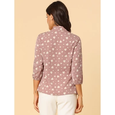 - Bow Tie Neck, Ruffle Shoulder, 3/4 Sleeve, Elastic Cuff