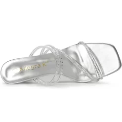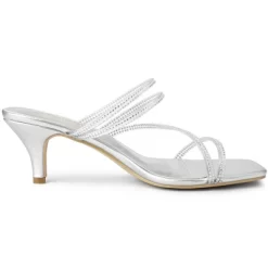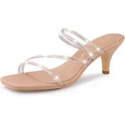 Strappy rhinestones decorate slide-style kitten heels and sandals for a modern feel. Featuring a square and open toe, they are perfect for matching your skinny jeans, dresses, skirts, or leggings. Your options are endless! They are also easy to be paired with jeans or a skirt for a casual look.