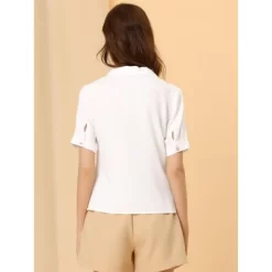 Creates an elegant chic look to your wardrobe with this button-up work shirt. A perfect choice for work or business casual with the classic solid colors of this blouse. The soft and lightweight woven fabric ensures all-day comfort. Suitable for summer and for many occasions, such as office, school, meeting, daily casual wear for your vacation, trip, or indoors.