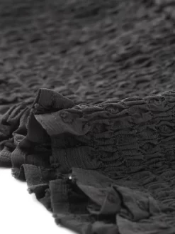 - V Neckline, Short Sleeves, Ruffle Cuffs, Smocked Waist, Swiss Dots