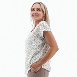 Sustainable and stylish, the Kristy Top is a versatile top. Cotton from Better Cotton Initiative (BCI)™ makes a wise choice for this top’s fabric. It is more sustainable to grow than conventional cotton (thanks to smarter water usage, non-toxic pesticide practices, and more) and still provides the breathability, comfortable handfeel, and easiness you love about cotton. By adding a touch of spandex, the fabric also has improved durability and shape retention. The all-over diamond print adds beautiful style and thoughtful details makes this a delight to wear. We love the placket on the front, complete with a hook and eye closure and modesty panel.