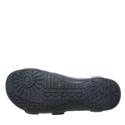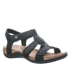 Give off boho chic, cool vibes in these wide width sizing faux leather upper and lined sandals. Customized fit with 3 point hook and loop closure on all three accented straps and tonal floral accents on the micro-suede contoured footbed, cork wrapped, cushioned EVA midsole and sculpted TPR outsole.