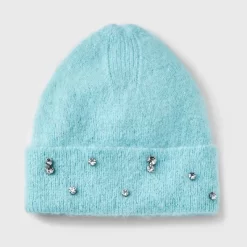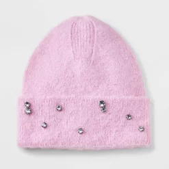 Add a fun touch of shine to your collection of winter hats with this Brushed Beanie from A New Day™. This super soft and warm beanie hat features a brushed knitted construction that’s decorated with rhinestone accents for sparkly flair. The foldover ribbed cuff provides a snug fit around your head, while the pull-on style makes for easy wear. Designed in a solid hue, it makes a great pairing with a variety of cool-weather outfits.