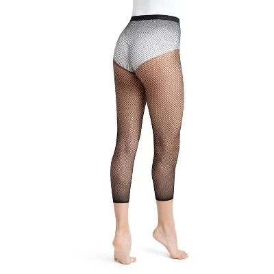 Work your magic in the Crop Studio Fishnet Tight. Features a plush elastic waistband that keeps the tight securely in place during the most intense dance numbers. Cropped capri cut will add a slight edge to your dancewear. The footless option makes it easy to slip on Capezio® footUndeez™ for a lyrical or modern class.