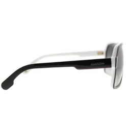 These Carrera 1001/S 80S 9O unisex aviator sunglasses, feature a black white plastic frame and grey gradient lenses. Size and dimensions for the Carrera model 1001/S are lens 62mm x bridge 11mm x temple 140mm. This frame will come with Carrera case, cloth and paperwork.