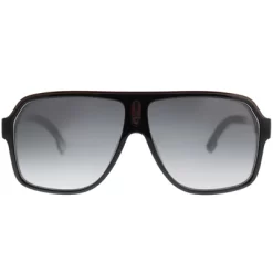 These Carrera 1001/S 80S 9O unisex aviator sunglasses, feature a black white plastic frame and grey gradient lenses. Size and dimensions for the Carrera model 1001/S are lens 62mm x bridge 11mm x temple 140mm. This frame will come with Carrera case, cloth and paperwork.