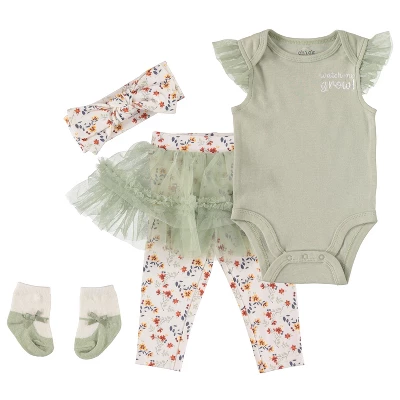 Transform your little one into a tiny ballerina with our enchanting Newborn Baby Girl Ballet-Inspired 4-Piece Set. This set includes a charming onesie, ballet-style tight pant leggings, an adorable bow, and cozy baby socks or booties. Available in an array of delightful floral patterns, this set offers a range of sizes from 0-3 months up to 24 months, ensuring a perfect fit for every stage of her growth. Toddler 2T, 3T, 4T will take your little ballet dancer all they way to age 5 in her favorite costume.