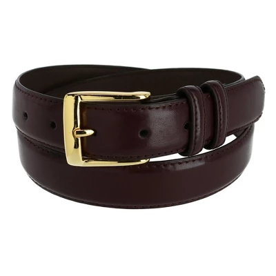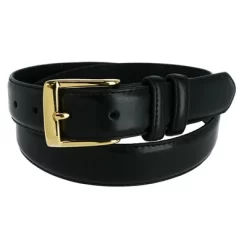 The classic black, feather edge, dress belt with a polished gold tone buckle. Single stitch sides match the double keepers. For the best fit, please take your pant size and go up one (if you wear a size 34 or 35, order a 36 belt).