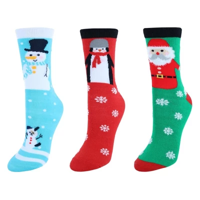 Show off a bit of your holiday spirit but stay looking professional with the terrific holiday themed socks. Crew-length cut, these socks feature fun characters like Santa, penguins, and snowmen, along with fun winter landscapes. Soft and comfortable, these socks are great for all day wear. Great for dress or casual wear, and perfect for stocking stuffers or a gift for a co-worker. Perfect gift for Christmas, birthdays, or just because you love them. Comes in a three pair value pack. Fits shoe sizes 4-10.