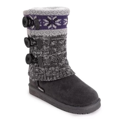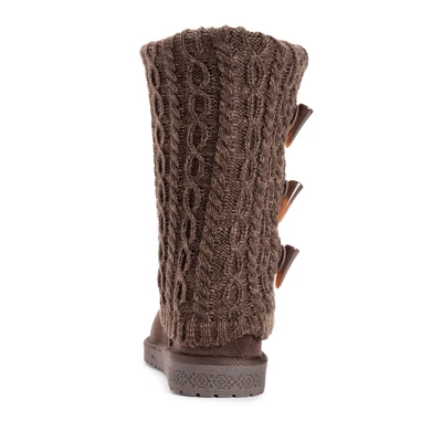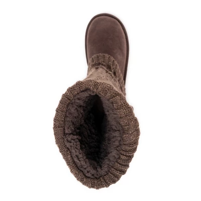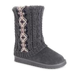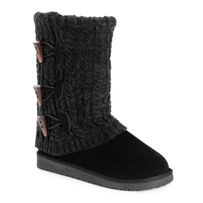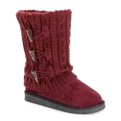 Essentials by MUK LUKS? Women’s Cheryl Boots can?t be beat. Cozy sweater knit design and soft faux fur lining blends everyday comfort with on-trend style.Wipe with a damp cloth to clean, no bleach, lay flat to dry. Imported.- Durable TPR Sole- 100% Polyester Insole- 100% Acrylic Knit -Foam Insole-100% Polyester Faux Suede Upper- 100% Polyester Faux Fur Lining- Water Resistant- Multiple color options available- Women?s Whole Sizes 6-11 -Half Sizes Size Up