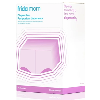 - WEAR: Disposable Postpartum Underwear is Step 2 in the Frida Mom 5-step Postpartum Recovery Regimen; pack in hospital bag for use after the first postpartum bathroom trips at the hospital and back at home.