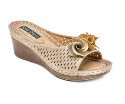 Inspire your look with these wedges from GC Shoes. The Juliet sandal is layered with feminine details, from the ruffled floral applique to the peep toe silhouette. The laser cut outs with the colored floral upper details fits naturally over the foot and an extremely padded footbed with a deep heel cup supports you while distributing the weight of each stride!