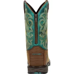 Rugged durability with all day comfort. The Georgia Boot Carbo-Tec LT women’s steel toe waterproof work boot features our premium SPR™ leather upper with leather pull straps and a rear zipper for an easy on and off of the boot. The heel stabilizing counter lock prevents heel slippage for a comfortable, secure fit.The steel toe cap is Ergo-Fit. It’s designed to match the contours of your foot for added range of motion. It meets ASTM F2413 impact and compression standards for safety toe footwear.The interior on this women’s western work boot is lined with a soft moisture wicking material. The breathable Georgia Waterproof System is designed to let air in while keeping water and muck out in wet conditions. The cushioning Quick Response removable insole compresses with each step, quickly bouncing back to its original form.A fiberglass shank adds stability and arch support. The EVA midsole cushions, acting as a shock absorber with each step. The durable outsole is made from our proprietary heat, oil, slip, chemical and abrasion resisting Carbo-Tec rubber outsole. It meets ASTM F2413 electrical hazard standards. One tough sole for one tough women’s work boot.