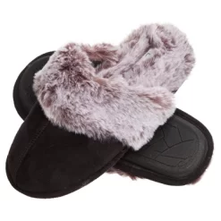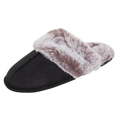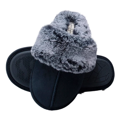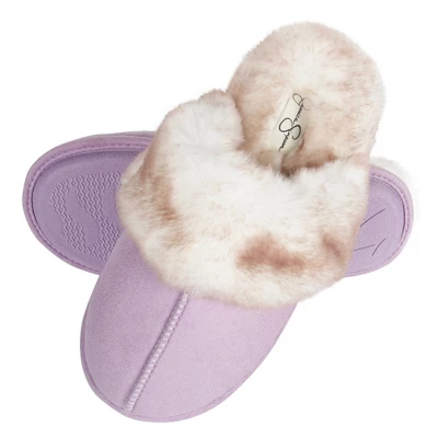 Slip into comfort with this Jessica Simpson signature, every day slipper. Enjoy the plush, luxurious, fully lined faux fur house slipper that will keep your feeling cozy and stylish all day long. These slide on, scuff style slippers help give your feet a much needed rest and are available in a variety of colors including Black, Grey, Tan, Pink, Purple and more. Available in size Small (US 6-7), Medium (US 7-8), Large (US 8-9), and X-Large (US 9-10). Slippers run small- we recommend selecting a size up.