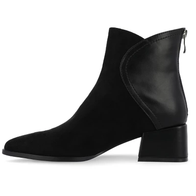 Meet Consuello, the classic and versatile bootie from Journee Collection that’s perfect for any wardrobe! Made from vegan leather with a two-tone accent. Consuello features a 2 in covered block heel, pointed-toe, and easy-to-use zipper entry for a simple and chic look. With a 4 mm Tru Comfort Foam™ insole, Consuello ensures a comfortable fit all day long and is great for mix-and-matching with any outfit.
