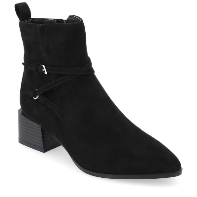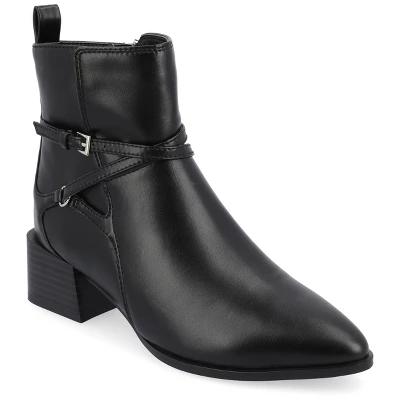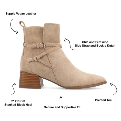 Introducing Estelle by Journee Collection, the must-have fall staple for your shoe collection. Made from vegan leather and designed with a 2 in block heel, strap detail with buckles, pointed-toe, and easy-to-use inside zipper, Estelle is the perfect combination of classic and trendy. With a 4 mm Tru Comfort Foam™ insole, Estelle ensures a comfortable fit all day long, making it the perfect choice for any occasion.