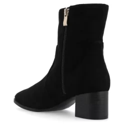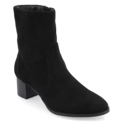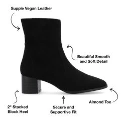 Step out in style with these Hayven booties from Journee Collection crafted from supple vegan leather. The stacked block heel adds a chic touch, while the inside zip ensures easy on and off. The almond toe gives these booties a flattering silhouette – while the 4 mm Tru Comfort Foam™ insole provides lasting comfort. With a 10 1/2-inch top circumference, they offer a secure fit. Perfect for a night out or everyday wear.