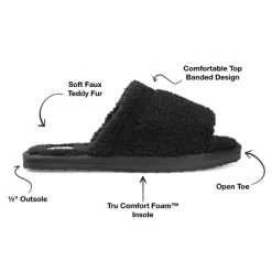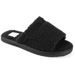 Relax after a long day in the Caterina slipper by Journee Collection. This slide-on design features snuggly teddy bear fur and a 4 mm Tru Comfort Foam™ footbed. A banded detail and an open toe perfect the look. At Journee Collection, our slipper styles will have your feet feeling like they’re on cloud 9. Perfect for when you want to wear shoes in the house but don’t want the problem of having to untie them.