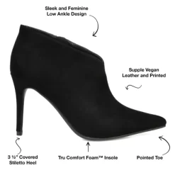 Demmi by Journee Collection is the jaw-dropping beauty that you’ll need this season. The pointed toe design and the angled foot entry create a gorgeous silhouette. This bootie features an inside zipper for easy entry, and you’ll be wearing a designer detailed bootie to spice up any outfit. At Journee Collection, our booties will give you that comfortable yet stylish look, perfect for when you’re in the office all the way to a fun night out with the girls.