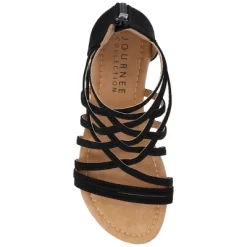 Show off the best boho look this season with strappy flat sandals by Journee Collection. Intricate straps overlap and create a basketweave design for a decorative appearance and closed back heels feature zipper detail to finish the look. At Journee Collection our sandal styles are going to be perfect for any occasion. Whether that be a formal business or casual dress these sandals will be a perfect match.