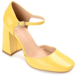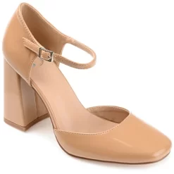 Indulge in vintage fashion with the Hesster heels by Journee Collection – a darling d’Orsay featuring a covered block heel and wide-width footbed with a padded insole for a comfortable lift. The Hesster also includes a glossy patent vegan leather, slim ankle strap, and soft square toe for a sophisticated finish. This exquisite shoe is a must-have accessory in your wardrobe.