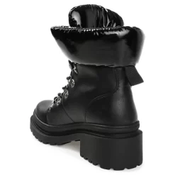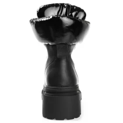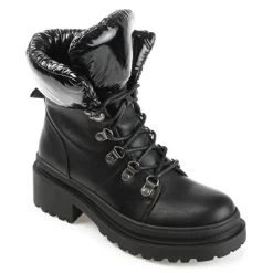 Cool and oh-so-comfy details define the Irrah booties by Journee Collection. This bold combat style features our signature 4 mm Tru Comfort Foam™ insole, soft vegan leather, and a puffed ankle for all-day comfort. A lace-up closure with hardware details and a chunky lug sole boldly complete the look. At Journee Collection, our booties will give you that comfortable yet stylish look, perfect for when you’re in the office all the way to a fun night out with the girls.