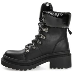 Cool and oh-so-comfy details define the Irrah booties by Journee Collection. This bold combat style features our signature 4 mm Tru Comfort Foam™ insole, soft vegan leather, and a puffed ankle for all-day comfort. A lace-up closure with hardware details and a chunky lug sole boldly complete the look. At Journee Collection, our booties will give you that comfortable yet stylish look, perfect for when you’re in the office all the way to a fun night out with the girls.