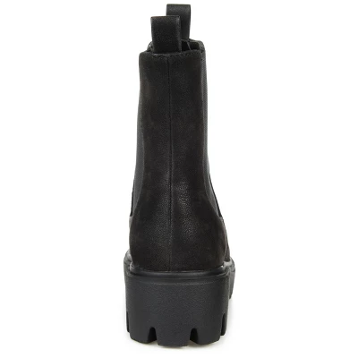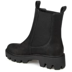 A 90s throwback that is sure to become a favorite, the Ivette by Journee Collection. This lug-soled chelsea bootie is topped with twin pull tabs and stretch gore panels on each side. A round-toe, vegan leather, and the softest 4 mm Tru Comfort Foam™ insole perfects this retro look. At Journee Collection, our booties will give you that comfortable yet stylish look, perfect for when you’re in the office all the way to a fun night out with the girls.
