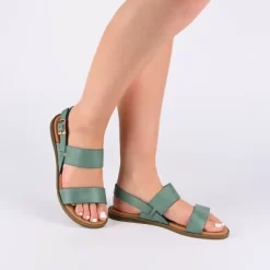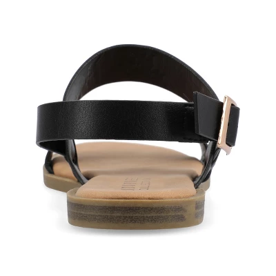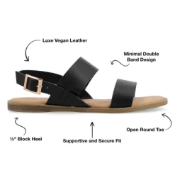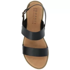 Refresh your closet with the beautiful Lavine sandal by Journee Collection. This classic sandal features a thick two strap design with a cushioned insole for those all-day summer activities. This sandal also showcases a flexible outsole, and the gold buckle completes the design. At Journee Collection, our sandal styles are going to be perfect for any occasion. Whether that be a formal, business, or casual dress, these sandals will be a perfect match.