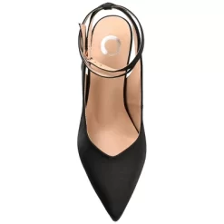 The Marcella by Journee Collection is our most stylish heel to date. This stunning heel, which has satin fabric uppers, a wide-width footbed, padded insole, and a strap with a clasp around it, is ideal for your upcoming night out. This backless silhouette is finished with a pointed toe and a sweetheart topline for a vintage look. With the Marcella pump on your feet, you’re sure to be the belle of the ball.