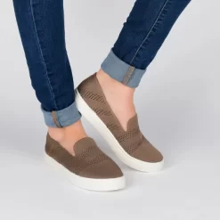 Soft knit uppers refresh this iconic slip-on design by Journee Collection. The Meika is a comfortable and versatile go-to sneaker designed to breathe on warm days. A white rubber sole and a 6 mm Tru Comfort Foam™ footbed complete this style for a cushioned instep. At Journee Collection, our athleisure styles provide basic comfort and will have your outfits looking as good as ever. They will take you from dull to sharp in no time.